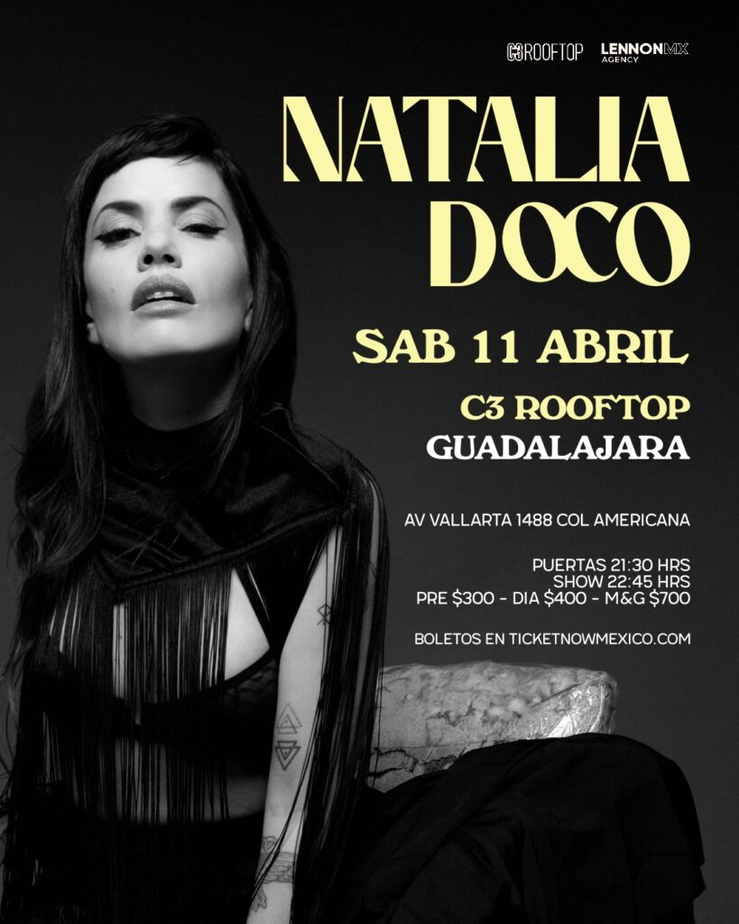 La argentina Natalia Doco regresa a Guadalajara para presentarse el viernes 18 de abril en el C3 Rooftop, en un show que arranca desde las 21:00 horas.