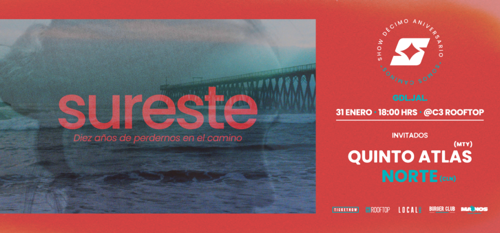 Con este concierto, Sureste celebra diez años de trayectoria, reafirmando su lugar dentro de la escena musical tapatía y ofreciendo una noche especial tanto para seguidores.