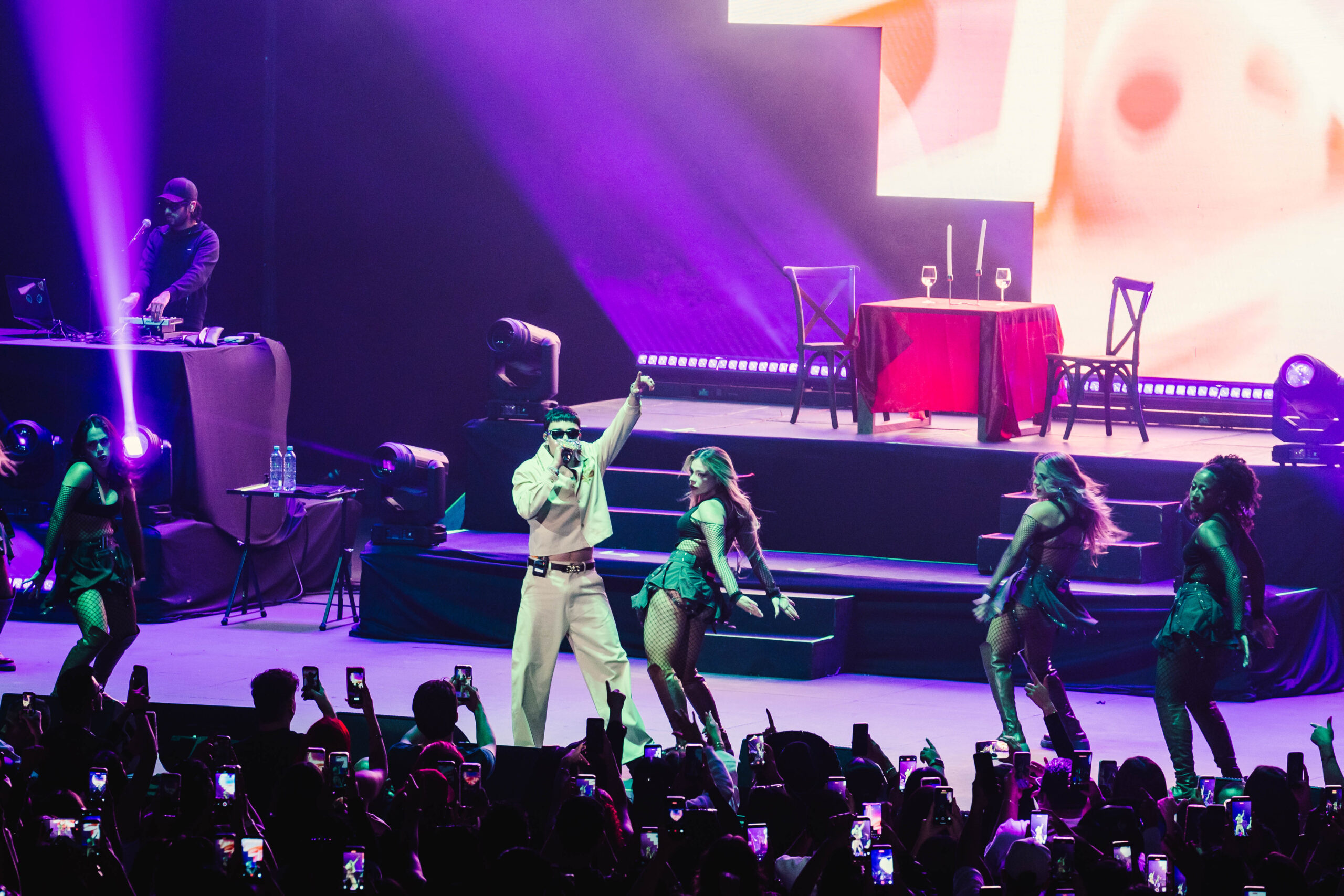 Cuando arrancó, no hubo tanto rollo ni introducciones largas. Directo al punto. Beats duros, bajos retumbando y una fila de tracks que la gente ya traía memorizados. “B de bellako”, “Vaquero”, “Mami tú”… no eran canciones, eran detonadores. Cada rola subía la temperatura y convertía el recinto en algo mucho más cercano a una fiesta de calle que a un auditorio formal.