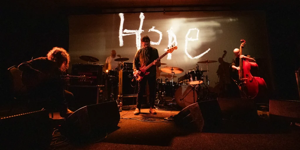 Godspeed no persigue el protagonismo ni el show espectacular; su fuerza está en la construcción. Dos baterías marcando rutas distintas, violines que cortan el aire, drones que sostienen la tensión y proyecciones que parecen fragmentos de otra realidad acompañan una narrativa que se siente más que se explica. Cada tramo del concierto funciona como un movimiento: primero la calma, luego la expectativa, después el golpe emocional. No hay discursos largos ni pausas forzadas, solo una sucesión de paisajes que conectan con quien escucha desde un lugar íntimo, casi hipnótico. Por eso cada ciudad vive un concierto distinto: la energía del público y del espacio termina de moldear lo que sucede esa noche.